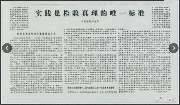圖為《光明日報(bào)》以特約評(píng)論員的名義公開發(fā)表《實(shí)踐是檢驗(yàn)真理的唯一標(biāo)準(zhǔn)》一文。
