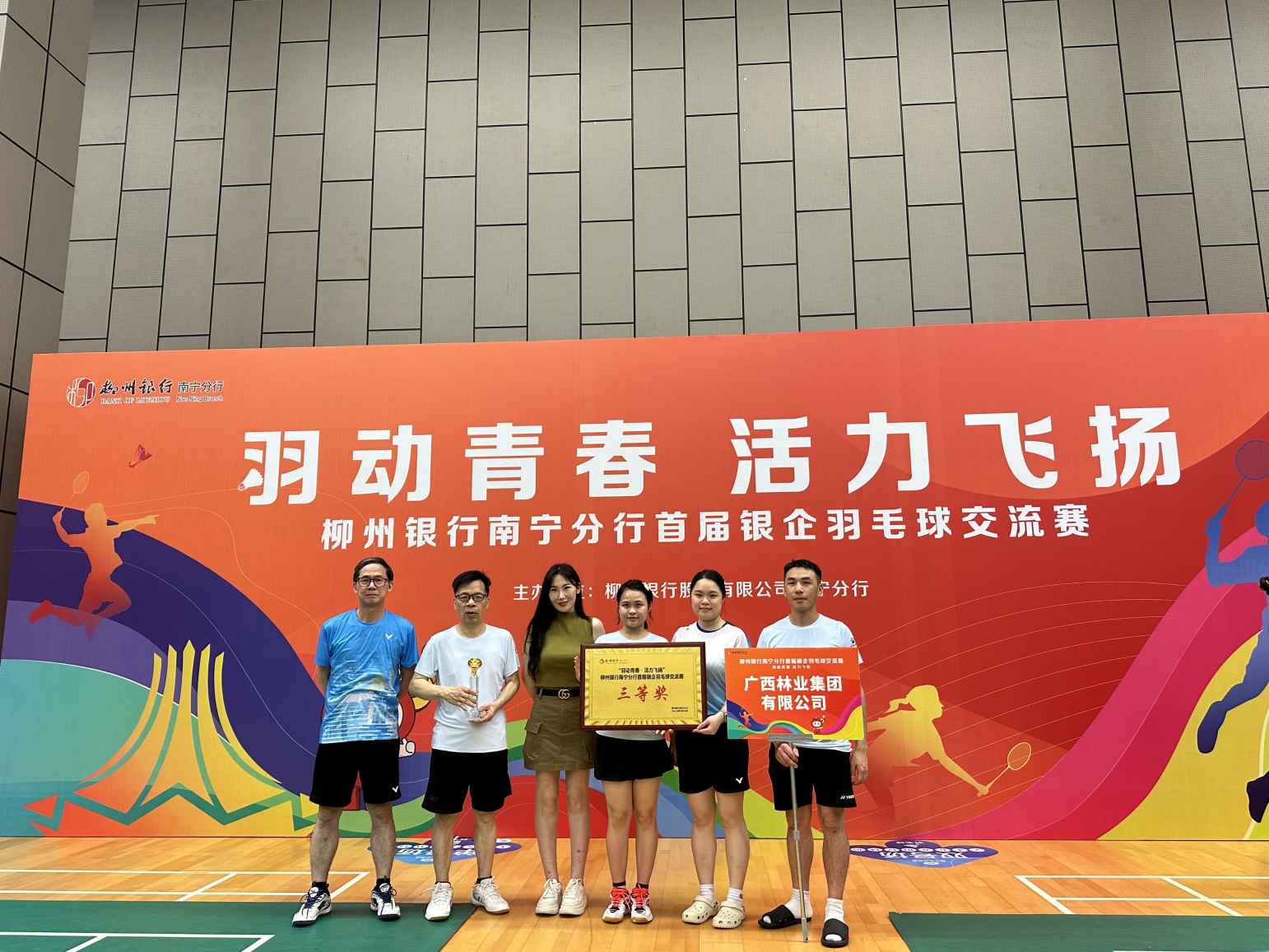 近日,柳州銀行南寧分行首屆銀企羽毛球交流賽圓滿落幕,廣林集團作為特邀單位參加了本次比賽。集團羽毛球隊在高手如云的參賽隊伍中最終斬獲第四名,榮獲團體三等獎的佳績。